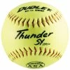 The Champro 12” slowpitch softballs are USSSA approved and feature an optic yellow leather cover with blue stitching. These softballs are constructed with a solid polyurethane core, flat seams, .44 COR, and 375 compression.