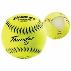 The Dudley Thunder SY NSA ICON synthetic 12″ slowpitch softballs feature a poly center that is precision blended and cross-linked. This allows for high density and maximum reliency for great feel and playability.