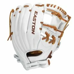 The Easton Professional Collection fastpich softball glove is specifically designed for smaller hands and the fastpitch softball game. This model measures 11.5″ and is ideal for fastpitch infielders. This glove features Premium Reserve™ USA steer hide leather with professional grade USA-tanned rawhide lace that is tested to a tensile strength of 100lbs. The glove’s open back is equipped with Easton’s Quantum Closure System™ that is fully adjustable for a tighter, more secure fit and optimal control. A moisture-wicking wrist lining pad keeps players cool and dry. A full leather lining maximizes comfort, while the steer hide binding and welting enhance shape retention and glove longevity.