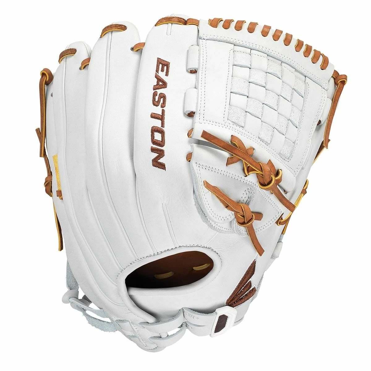 The Easton Professional Collection fastpitch softball glove is specifically designed for smaller hands and fastpitch softball players. This model measures 12″ and is ideal for fastpitch infielders and pitchers. This glove features Premium Reserve™ USA steer hide leather with professional grade USA-tanned rawhide lace that is tested to a tensile strength of 100lbs. The glove’s open back is equipped with Easton’s Quantum Closure System™ that is fully adjustable for a tighter, more secure fit and optimal control. A moisture-wicking wrist lining pad keeps players cool and dry. A full leather lining maximizes comfort, while the steer hide binding and welting enhance shape retention and glove longevity.