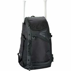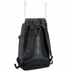 The Easton E610CBP Catcher’s Backpack (25″H x 15″W x 10″D) is built to hold all of your catcher’s gear and then some. Designed with Easton’s Sport Utility 2.0 functionality, the backpack features a vented main compartment to fit catcher’s gear with an interior shelf to keep things organized, as well as a separate vented compartment for your cleats. Side mesh sleeves for your leg guards can be folded and secured out of the way when not in use, and an external strap and buckle on the front are ideal for attaching your ball glove or batting helmet. The bag also features two fully lined bat sleeves, eliminating the need for a second bag.