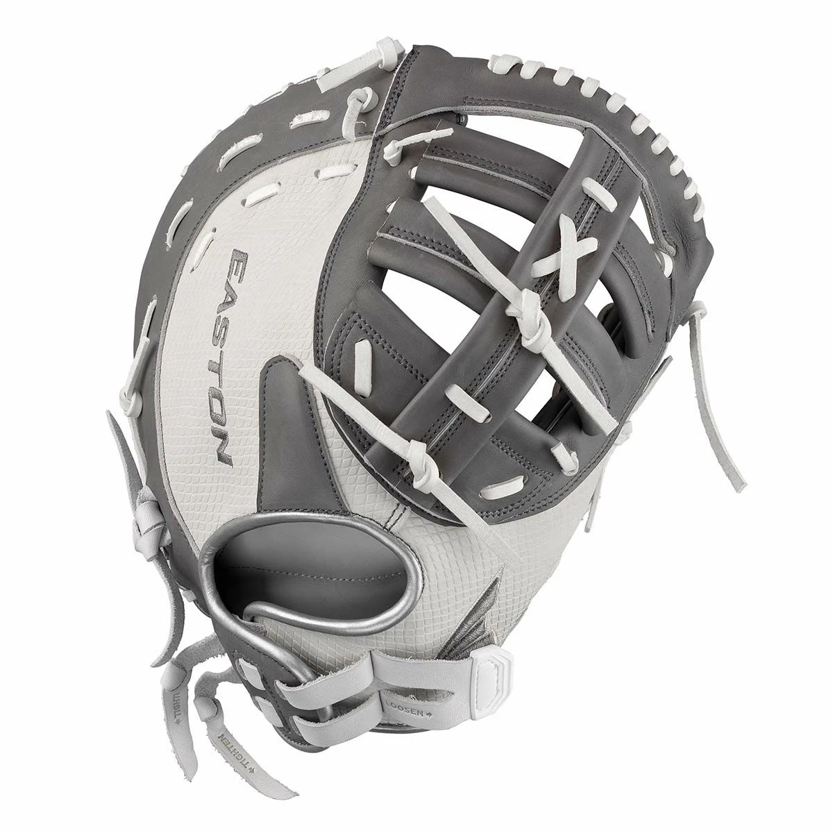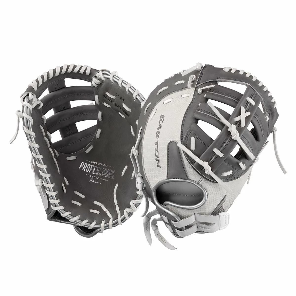 The Easton LC44 Professional Signature fastpitch first base mitt has fastpitch-specific patterns, making it perfect for first base players competing at the games’ highest levels. The 12.5″ mitt is constructed of Premium Reserve™ USA steer hide leather with a classic cowhide palm lining for maximum comfort, and steerhide binding for enhanced durability. This glove also features a rolled leather welting system for an expedited break-in process as well as a water-resistant Ax® Suede microfiber wrist liner for breathability.