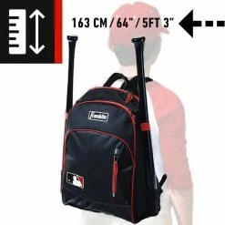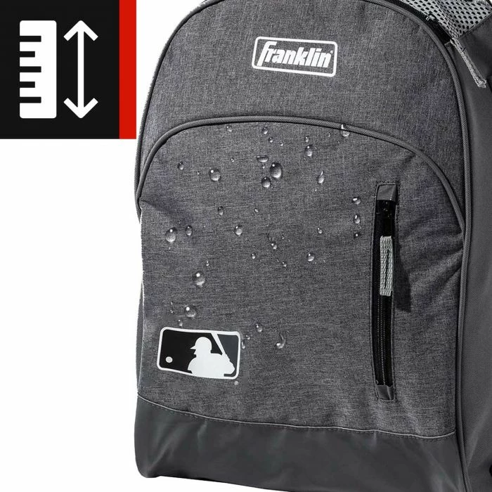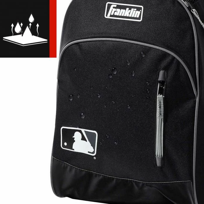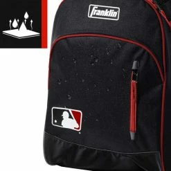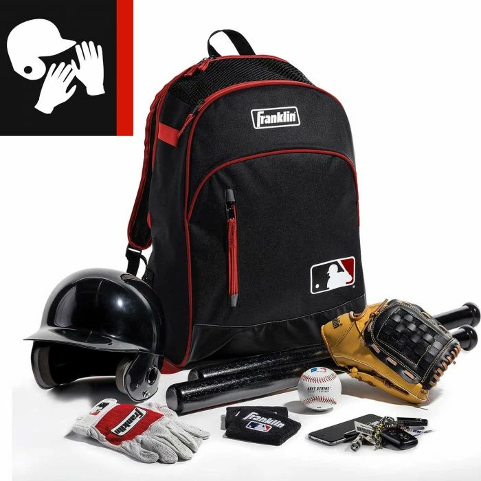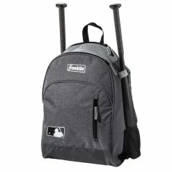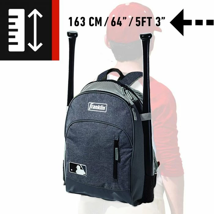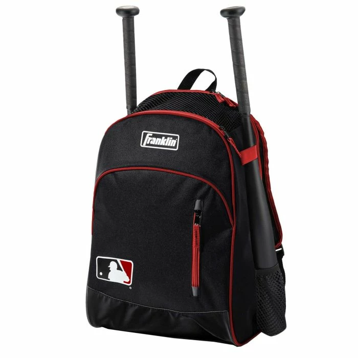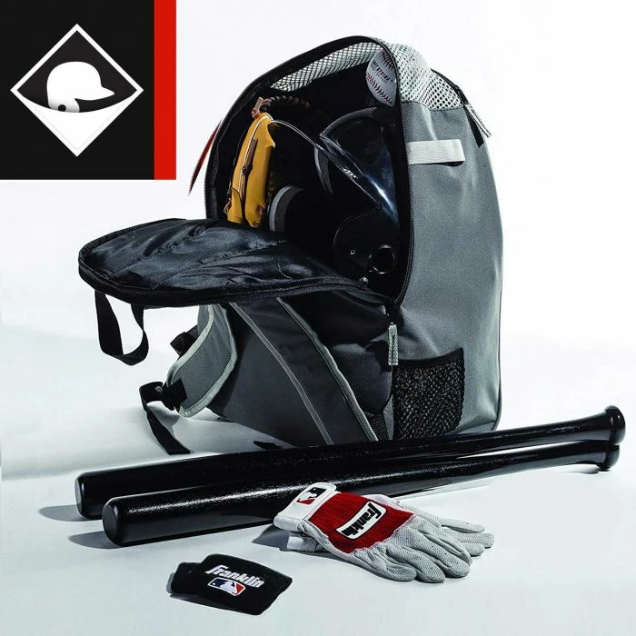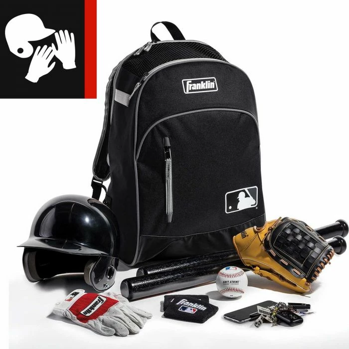 Designed to transport all your game or practice equipment in one place, Franklin’s MLB Batpack is constructed with an ultra-durable, lightweight nylon exterior and features a breathable top-side mesh compartment. The outer pockets let you carry up to two bats hands-free and the zippered front pocket is perfect for keys, ID and other small items. *LARGE STORAGE COMPARTMENT – Spacious main compartment holds baseball helmet with face mask, batting gloves, fielding glove, cleats, and various accessories *VENTILATION – top-side mesh ventilation allows breathability for airing out cleats and gloves after practice or game *EASY-USE FENCE HOOK – Convenient j-style hook allows bag to hang on dugout fence for easy accessibility *SUPERIOR PORTABILITY – Contoured, cushioned backpack-style shoulder straps provide for easy transport; quick-access dual-bat storage holds two bats that are easy to grab when on the go *CONVENIENT VALUABLES POCKETS – Top and front-access pockets safely store keys, mobile phone, wallet, and small valuables BAG SIZE – 19.25″ x 14.00″ x 7.25″ *BATS NOT INCLUDED/li>