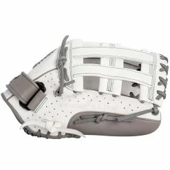 The Mizuno GPE1300F1 prime elite fastpitch softball glove features a 13″ pattern with an H-web design, making it ideal for outfielders. This fastpitch glove is equipped with soft, smooth leather that is durable while offering a pro-level feel. The prime elite’s UltraSoft pro palm liner provides a soft feel and finish in the pocket. A perforated thumb and pinky panel design reduces the glove’s weight and increases its breathability. The finger core technology offers a finger stall shape that helps improve flexibility and control when making a tough play, while also providing a more comfortable option for players who prefer to shift their ring finger to the pinky slot. Designed with fastpitch patterns that make the prime elite an excellent glove choice for serious fastpitch players.