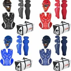 The Pro Nine 3-piece youth catcher’s gear set includes a youth helmet, a youth chest protector, and a pair of youth leg guards. The helmet is available in your choice of 4 colors and meets the NOCSAE standard. Made with a high impact ABS shell and a dual density foam headliner, this helmet ensures proper protection and comfort to last all game long. The included chest protector is constructed with a permanent tail and designed for easy adjustments, making putting on and taking off a breeze between innings. The youth leg guards are also made with high impact ABS plastic and feature a single knee design with optional toe guards. Outfit your catcher with all of the proper gear next season with this 3-piece set.