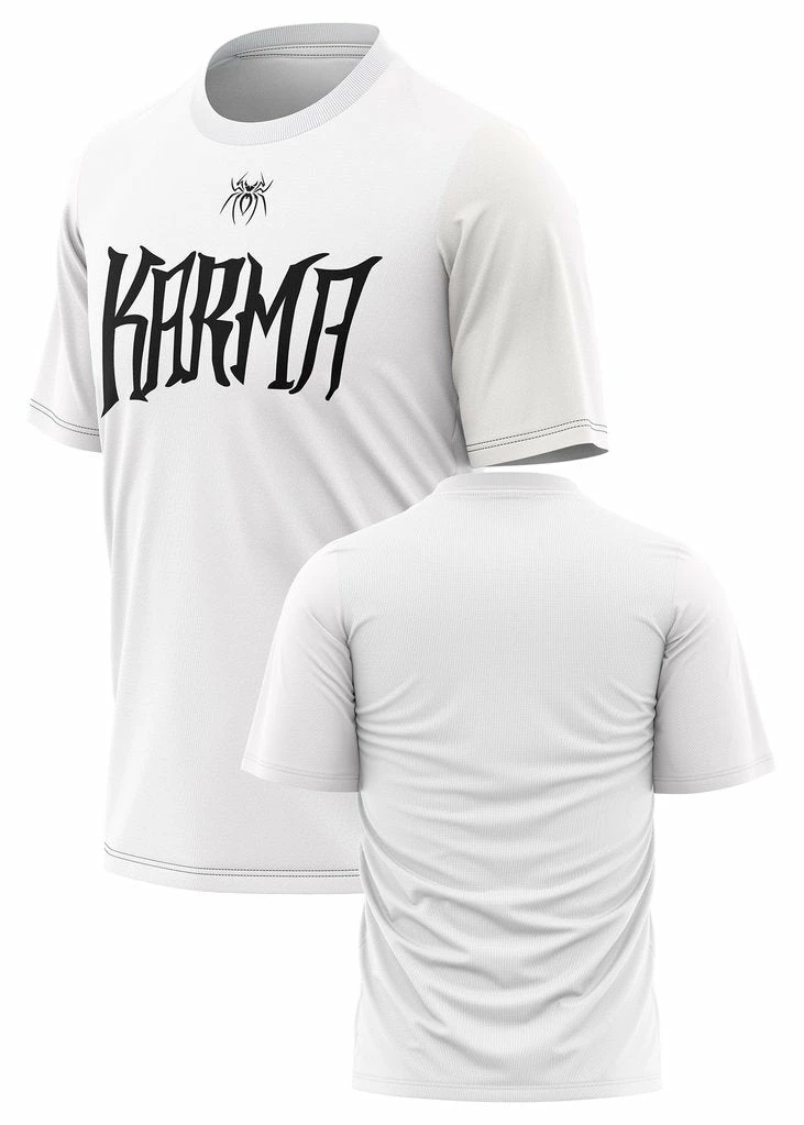 The timeless white Karma t-shirt is the go-to statement for you to show off your bold personality! The “Karma” t-shirt by Spiderz is perfect to rock both on and off the field.